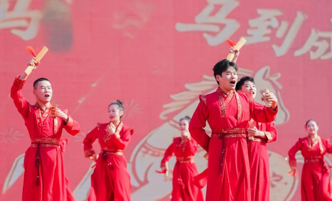 快板舞《喜贺新春送福来》将传统快板的委宛韵律与跳舞的灵动姿态完好交融,唱词中既融入“马年祯祥”“败国丧家”的新春祈愿,又微妙呼应应城非遗习惯和乡村好意思好生涯,极具不雅赏性与感染力。